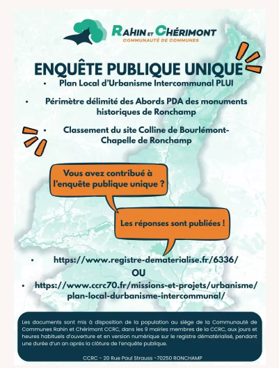 les documents sont disponibles sur le site de la Communauté de Communes de Rahin et Chérimont.